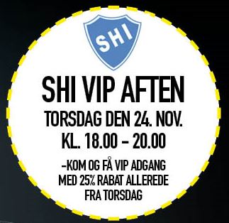 Intersport har lavet en særlig SHI Vip aften dagen før, nemlig torsdag den 24. nov. kl. 18 – 20, hvor alle SHI’s medlemmer + familie kan handle med 25% rabat.